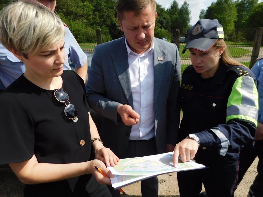 Ответственным службам даны поручения: в течение недели расширить участок дороги на повороте на ул.Центральную при въезде в д.Экимань со стороны г.Новополоцка (напротив учебного центра ДОССАФ), установить плиты на местах будущих остановок, светофоры, изготовить и установить новую схему движения транспорта.