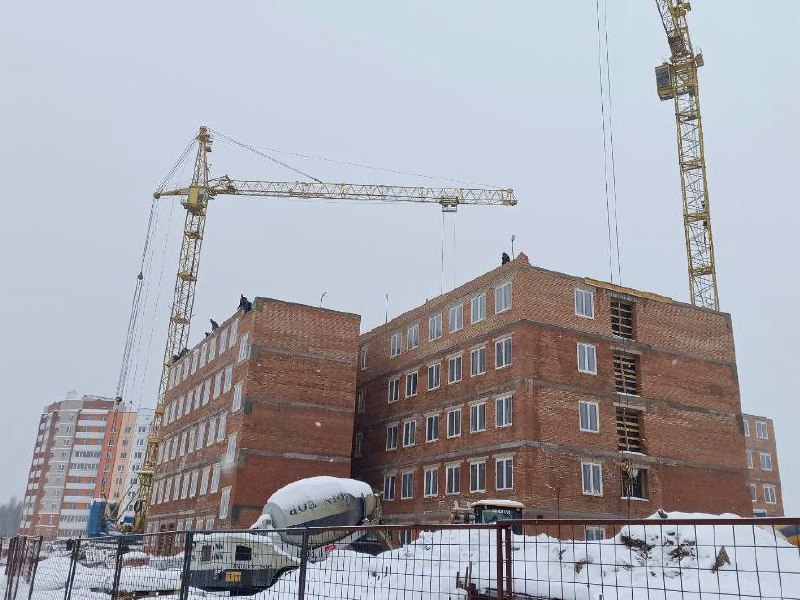 Так, проводятся работы по кладке стен 6-го этажа, монолитным перекрытиям 5-го этажа, установке оконных блоков. Продолжаются работы по монтажу внутренних инженерных коммуникаций. Приступили к облицовке стен 1-го, 2-го, 3-го этажей.