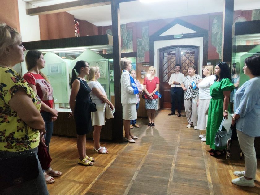 После чего участники встречи окунулись в историю города над Двиной. На протяжении академического часа экскурсанты познакомились с разными эпохами развития Полоцка от долетописного упоминания до XX века. Внимание группы привлекла экспозиция «Почётные граждане Полоцка», среди личностей, отраженных на стендах игуменья Евдокия, архиепископ Феодосий, художница Нинель Счастная, заслуженная артистка Беларуси Ксения Погорелая, писатель Наум Гальперович и многие другие личности, которые внесли особый вклад в развитие Полоцка.