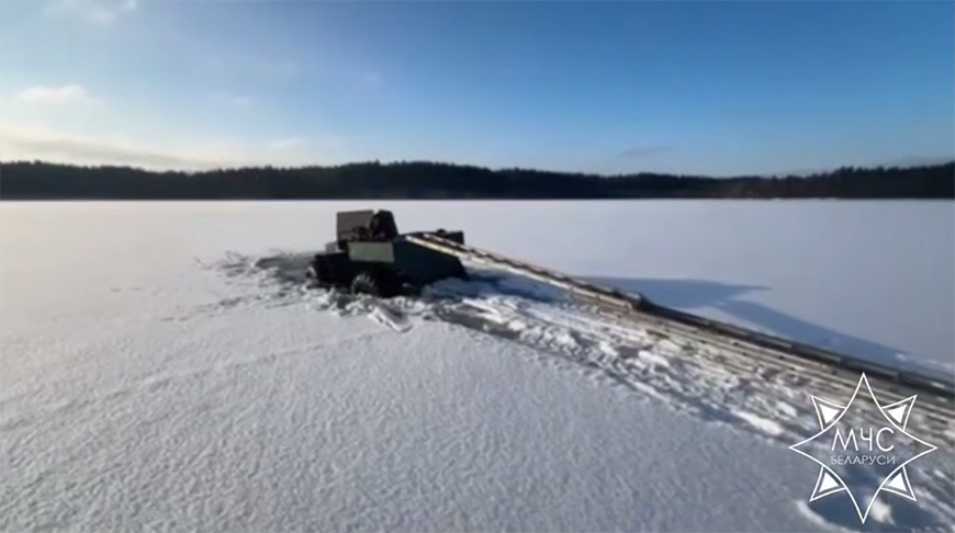 Прибывшие спасатели на расстоянии 100 метров от берега увидели самодельный снегоход и троих мужчин, которые не могли самостоятельно выбраться на берег. Работники МЧС с помощью лестницы и спасательной доски помогли им добраться до суши.