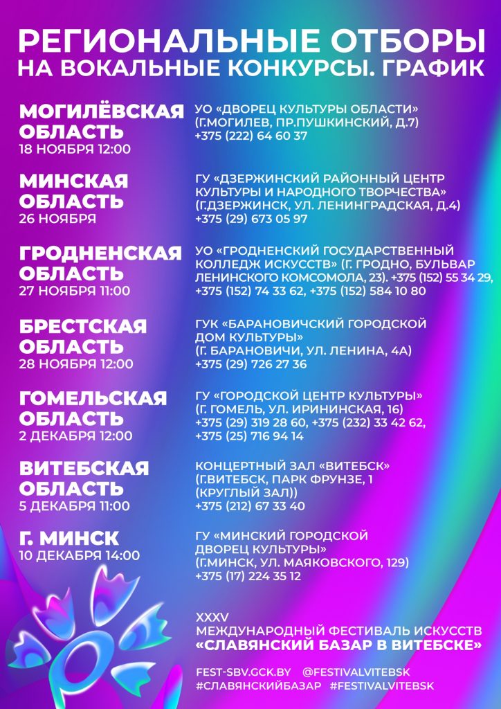 Международный фестиваль искусств «СЛАВЯНСКИЙ БАЗАР В ВИТЕБСКЕ» 18 ноября начнёт региональные отборы на детский музыкальный конкурс и конкурс исполнителей эстрадной песни.