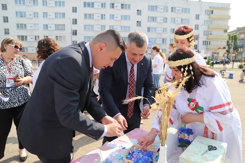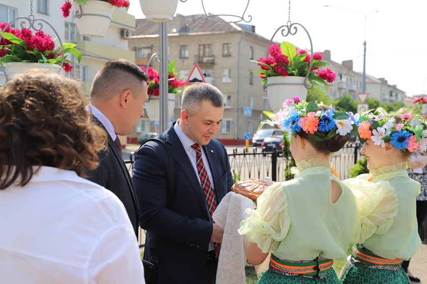 Высокого гостя приветствовали в лучших национальных традициях – с хлебом-солью, с белорусскими песнями и танцами, с народными играми, угостили блюдами национальной кухни. Познакомили и с достопримечательностями Полоцка.