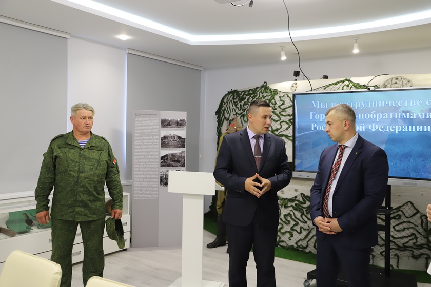 Директор СШ №1 Павел Ястремский в школьном медиацентре презентовал работу учреждения и региона по проекту «Полоцкий рубеж», а также рассказал о сотрудничестве с российскими учреждениями и организациями в вопросах военно-патриотического воспитания учащихся, поисковой деятельности.