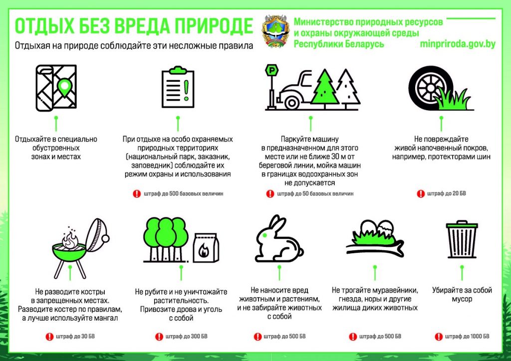 Чтобы не наносить вреда окружающей среде Минприроды рекомендует гражданам и гостям Беларуси соблюдать несколько простых правил.