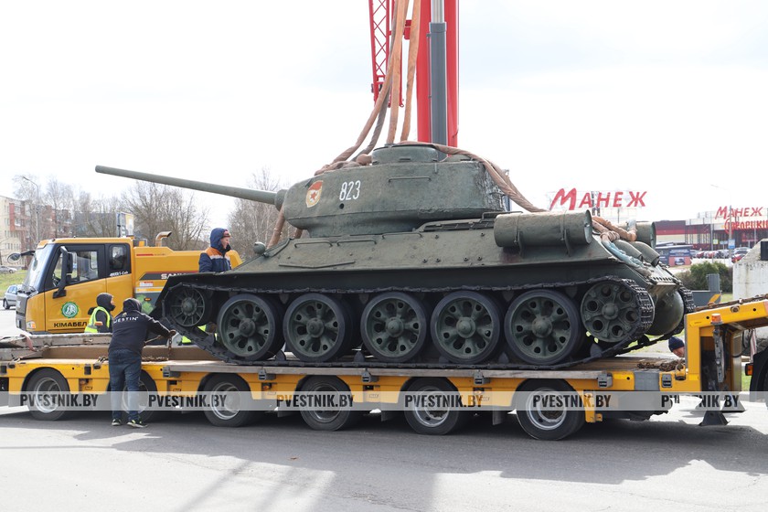 Сегодня танк Т-34, установленный на кольцевой развязке, отправлен на восстановительные работы, чтобы ко Дню Победы в обновленном виде снова занять свое прежнее место.