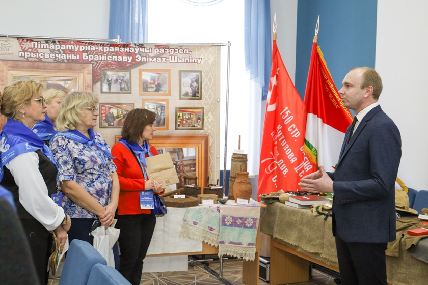 Насыщенную программу подготовили для ярославцев в Полоцком кадетском училище. Здесь же, в актовом зале, на большой выставке-презентации, организованной учреждениями образования района, им рассказали о деятельности наших школьных музеев. Завершилась презентационная эстафета посещением ПГГ №1 им.Ф.Скорины.