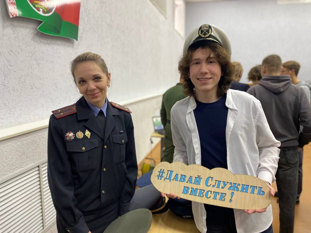 Перед ребятами выступил начальник отделения комплектования отдела кадров УВД Витебского облисполкома подполковник милиции Валерий Вашкель, который рассказал об имеющихся вакантных должностях, преимуществах службы в милиции.