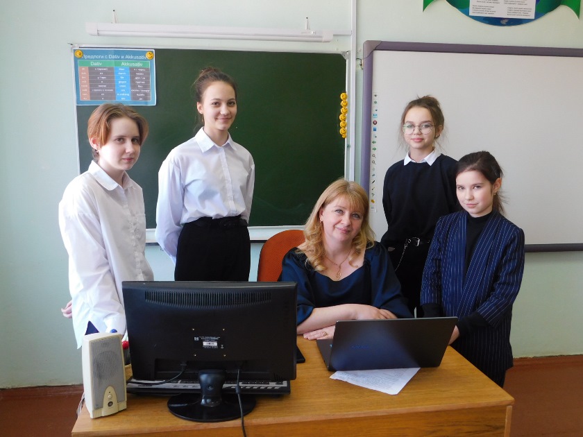 А сколько немецкоязычных проектов разработала Алина Михайловна вместе с юными языковедами! Среди недавних — «Книга мира», в котором участвовали зелёнковские дети и их ровесники из 8 стран. С этим проектом она выступала на Республиканском рождественском фестивале педагогического мастерства. С коллегой из Хорватии, которая вместе со своими учениками участвовала в «Книге мира», в этом году продолжили проект и провели встречу с детьми в онлайн-формате, где школьники рассказывали о зимних праздниках в их ­странах.