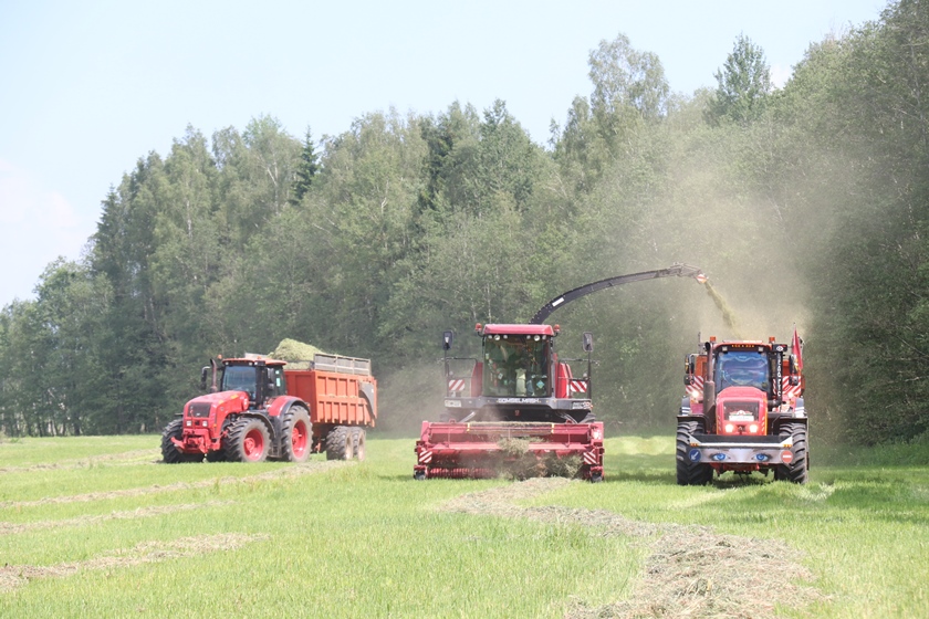 Зялёнае жніво ў гэтай гаспадарцы ідзе ўжо некалькі дзён, у паветры стаіць водар свежаскошанай травы.