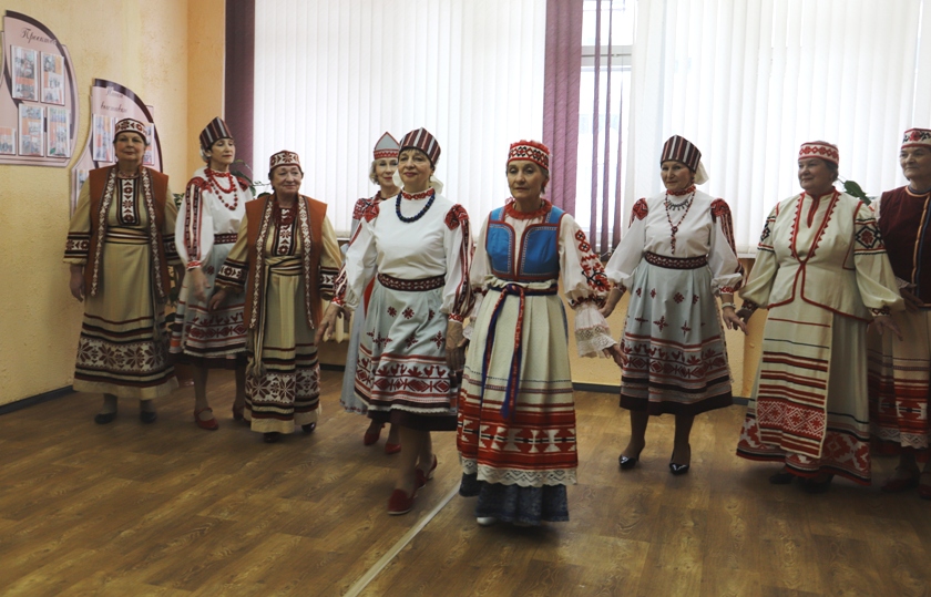 Пачалася сустрэча з дэфіле жаночых народных строяў, якія прадэманстравалі наведвальніцы аддзялення. Яркія, самабытныя ўборы, кожны з іх увабраў у сябе водгаласы стагоддзяў і адлюстроўваў уклад жыцця продкаў.