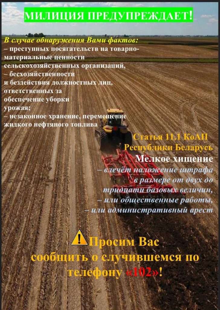 В Республике Беларусь полным ходом идет уборочная кампания, в связи с чем вновь остро становится проблема профилактики хищений и бесхозяйственности на объектах агропромышленного комплекса.