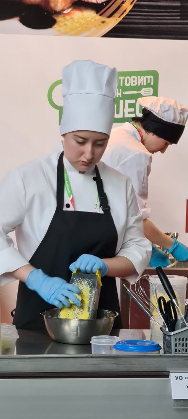 В чемпионате, собравшем на одной площадке действующих шефов и начинающих поваров Республики Беларусь, приняли участие представители Полоцкого государственного химико-технологического колледжа. Под пристальным взором компетентного жюри под председательством главы Гильдии поваров и шеф-поваров Беларуси Александром Чикилевским кулинарную честь Полоцка, своего учреждения образования и отделения общественного питания отстаивала учащаяся третьего курса Есения Ульянович. И блестяще выдержала конкурентную борьбу, в которой участвовали 16 команд из разных уголков страны.