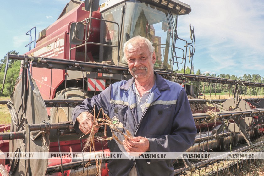 Мы на свае вочы пабачылі першае зерне 2024 года. Канешне, яго трэба пачысціць і высушыць. Але ж галоўнае, што ўраджай ёсць!