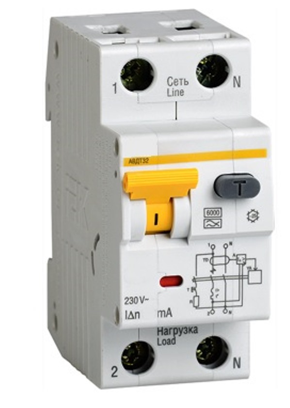 Автоматический выключатель, управляемый дифференциальным током, со встроенной защитой от сверхтоков (АВДТ)