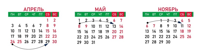 - 6 ноября (понедельник) – на субботу 11 ноября.