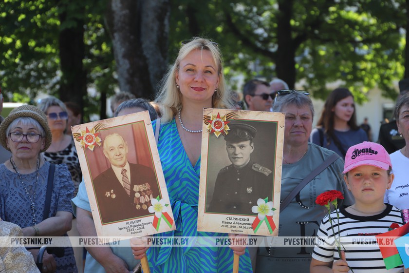 «Вахта памяти» в то утро прошла у братских могил солдат Победы, памятников и обелисков, установленных в их честь. В городе, возле памятника Освободителям г.Полоцка также состоялась патриотическая акция. Участие в ней приняли руководство Полотчины, депутаты всех уровней, представители силовых структур, политических партий, духовенства, предприятий, общественных организаций, жители региона. Направляясь в сторону площади, люди несли в руках не только цветы и венки, но и портреты ветеранов, участников Великой Отечественной войны, чтобы присоединиться к акции «Беларусь помнит».