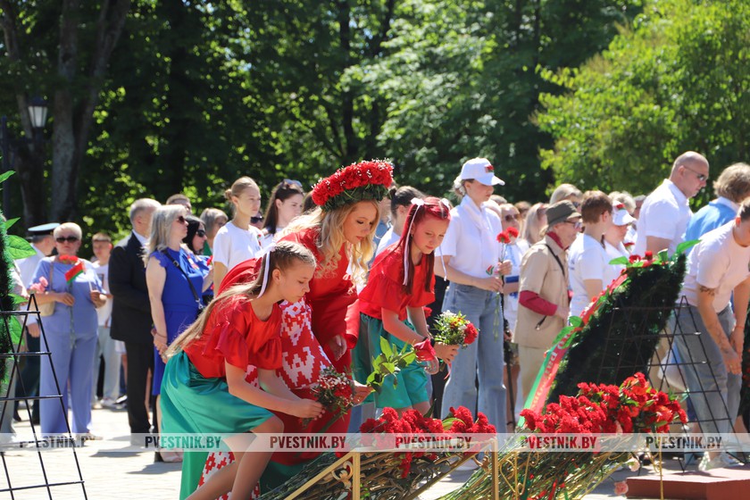 Минута молчания – минута памяти и тишины под мирным небом… А в знак благодарности за подвиг во имя жизни дети, внуки и правнуки героев-освободителей возложили венки и цветы на «Поле ратной славы» и к Вечному огню у памятника Освободителям г.Полоцка.