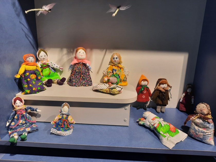 Здесь представлено более 50 уникальных игровых традиционных народных кукол, созданных из подручных средств и лоскутков. Ненужные вещи в руках мастера превращаются в произведения искусства.
