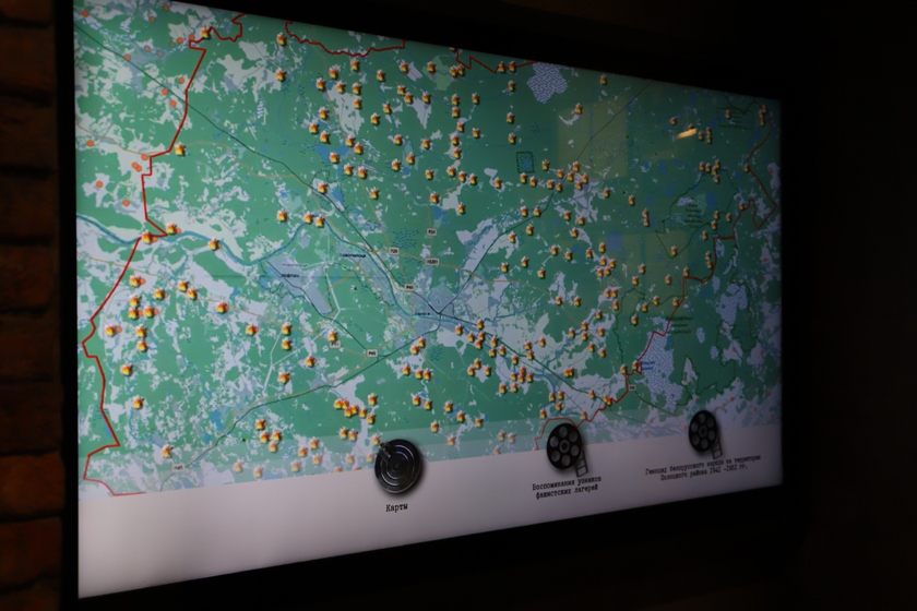 Заведующий Музеем боевой славы Константин Нарейко провел небольшую экскурсию, рассказав о судьбах деревень Полотчины, которые отмечены «огоньками» на интерактивной карте сожженных деревень в экспозиции музея. «В 5 км от д.Малое Ситно до войны находилась д.Чербомысло. Сегодня она значится только на нашей карте, — уточнил Константин Александрович. — До войны в ней было порядка 15 дворов, проживало 48 человек. 10 января 1943 года во время карательной экспедиции «Зимний лес» гитлеровцы уничтожили 28 жителей, в том числе детей, а деревню сожгли. Она так и не возродилась… И похожих трагедий на территории Беларуси огромное количество».