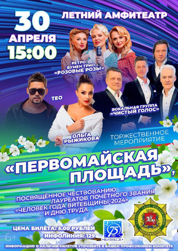 30 апреля; 15:00. Билеты в кассах города и на kvitki.by