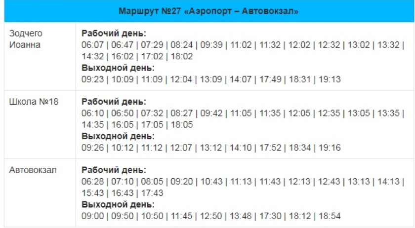 На период с 19.06.2023 по 31.08.2023 сокращаются рейсы по маршрутам №27 «Аэропорт – Автовокзал»№4 «Мариненко – Боровуха», выполняемые автобусами малой вместимости. Они будут следовать по следующему расписанию: