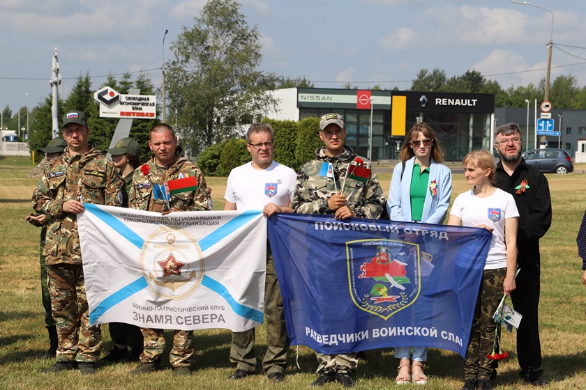 На торжественном мероприятии собрались представители общественных объединений, поискового отряда «Разведчики воинской славы», молодежь, воспитанники детского сада, а также гости из Архангельска (Российская Федерация) – региональная организация «Военно-патриотический клуб «Знамя Севера».