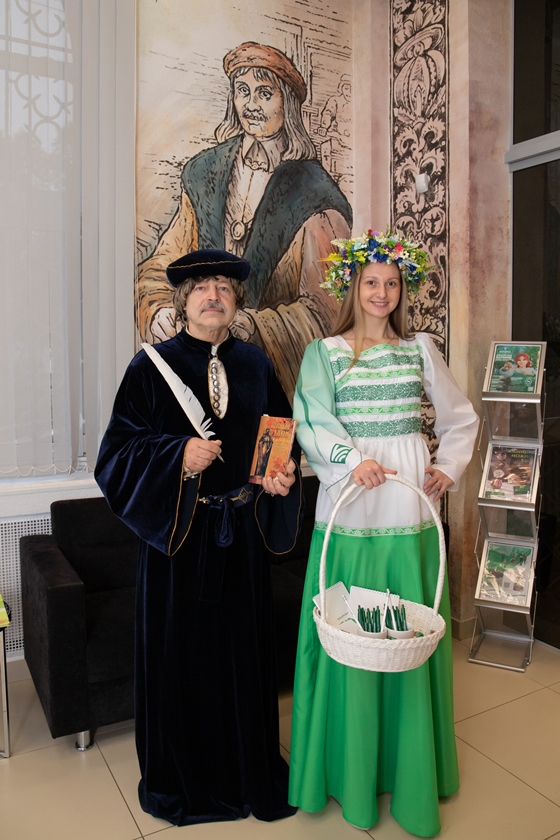 Буквально за пару дней отделение №216/2069, расположенное в исторической части Полоцка, преобразилось. И 1 ноября состоялась его презентация, участие в которой приняли председатель Полоцкого райисполкома Игорь Маркович, директор ЦБУ №216 Игорь Демидков, сотрудники и клиенты банка. Присутствующие узнали о том, что проект — это не просто уникальная роспись стен, а суть его заключается в том, чтобы продемонстрировать неразрывную связь истории банка с историей нашей страны. Атмосферности событию придало присутствие Франциска Скорины, в роли которого выступил поэт Александр Раткевич. Он приветствовал гостей повествованием о развитии книгопечатания и банковского дела на Полотчине и прочел стихи о полоцких улицах.