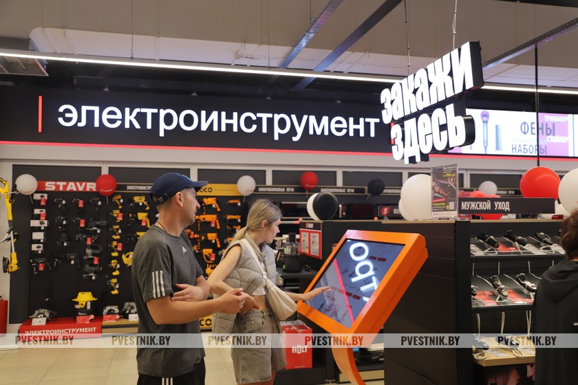 Пока одни совершали покупки, другая часть покупателей с интересом изучала специальное табло с доступом к интернет-магазину 5element.by. С помощью него можно оформить доставку товара на дом или в ближайший к вам магазин «5 элемент». Тут есть пункт выдачи заказов, который точно порадует любителей онлайн-шоппинга отсутствием очередей. Удобно, быстро и современно.