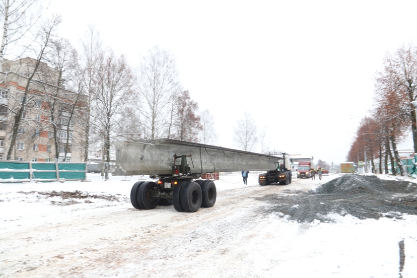 Железобетонные балки длиной 22 метра каждая начали доставлять на объект по реконструкции моста через р. Полоту по ул.Октябрьской.