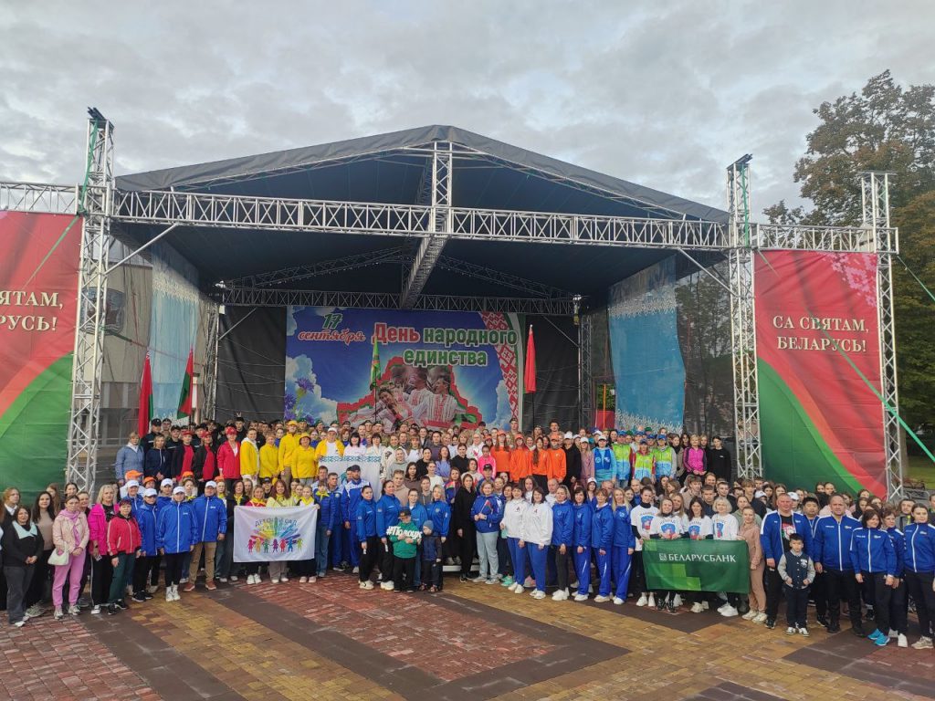 На площади Свободы в День народного единства прошла общерайонная зарядка «Спорт объединяет», участие в которой приняли более 430 жителей Полотчины.