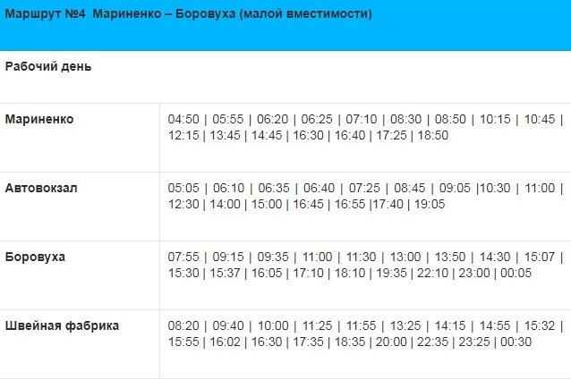 С 13 октября сокращаются рейсы по маршруту № 4 «Мариненко – Боровуха», выполняемые автобусами малой вместимости.