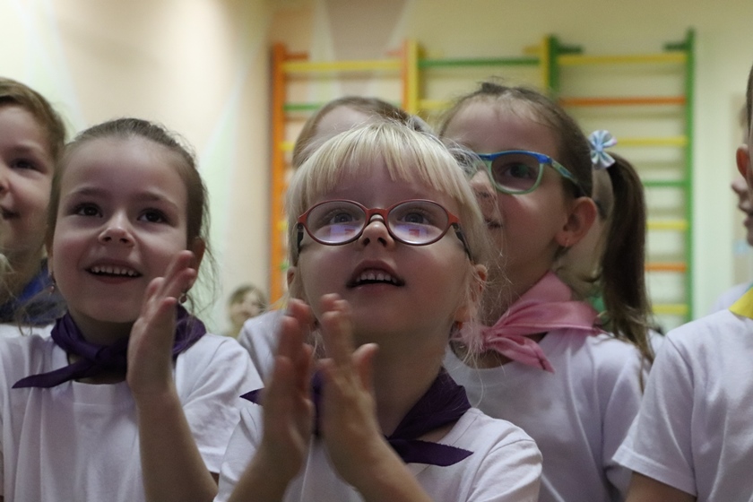 Воспитанники из обычных и специальных групп, выполняя вместе различные задания, помогли Фиксикам снова научиться дружить. Веселая и непринужденная атмосфера царила в актовом зале. Ребята с большим интересом собирали в свою копилку взаимопомощи волшебные буквы, которые в конце игры превратились в слово «ВМЕСТЕ». Дружба и взаимовыручка стали слагаемыми успеха маленьких полочан.