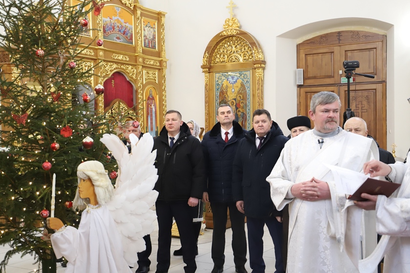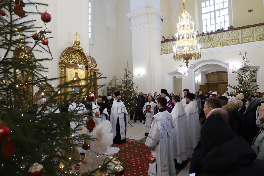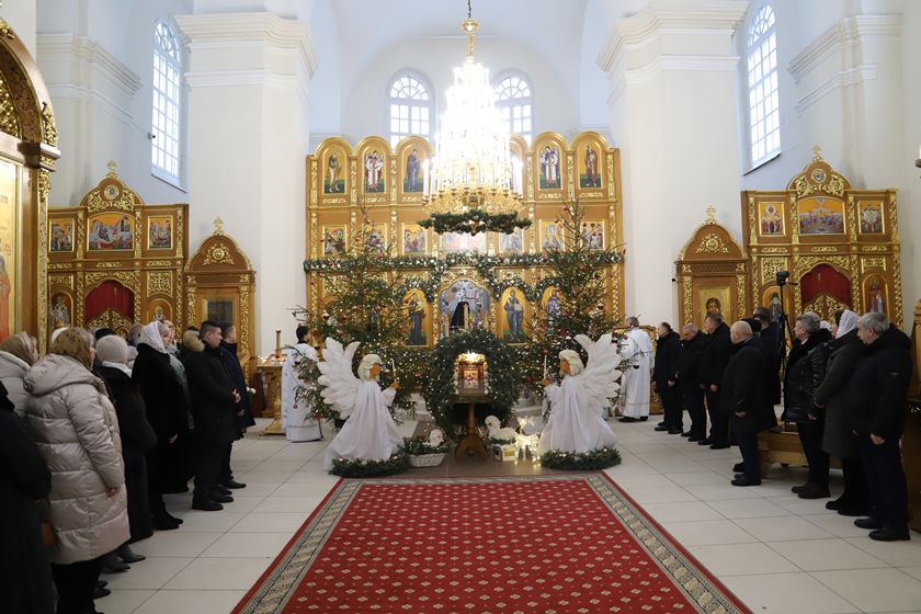 Богослужение возглавил епископ Полоцкий и Глубокский Игнатий. После завершения молебна епископ Игнатий обратился к присутствующим с напутственным словом, подчеркнув важность духовного очищения и обновления в начале нового года. Он призвал всех к милосердию, состраданию и помощи нуждающимся, напоминая о вечных ценностях, которые несет в себе Рождество Христово.