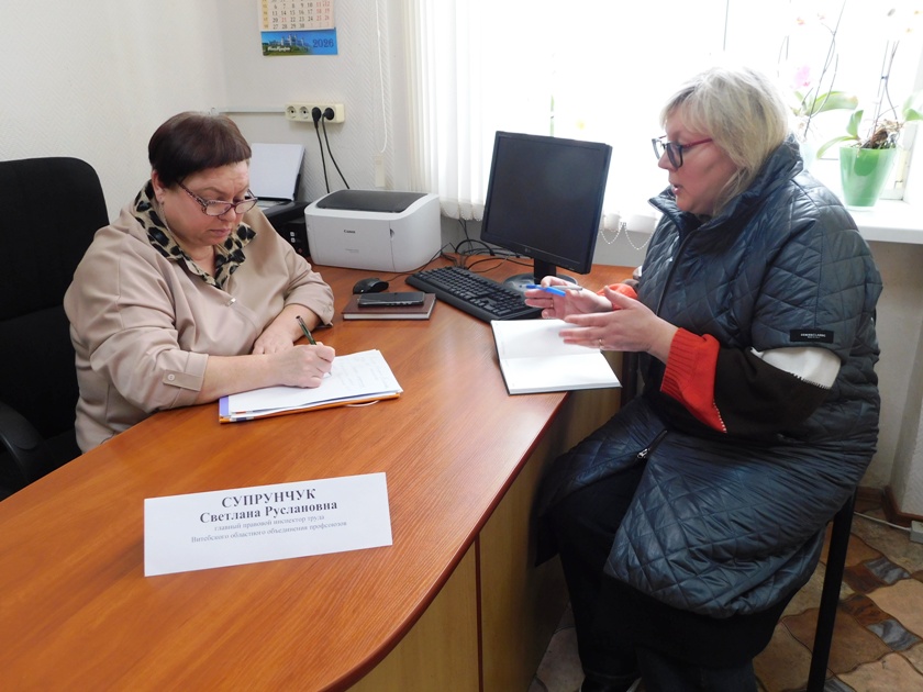Состоялся профсоюзный правовой прием с участием главного правового инспектора труда Витебского областного объединения профсоюзов Светланы СУПРУНЧУК.