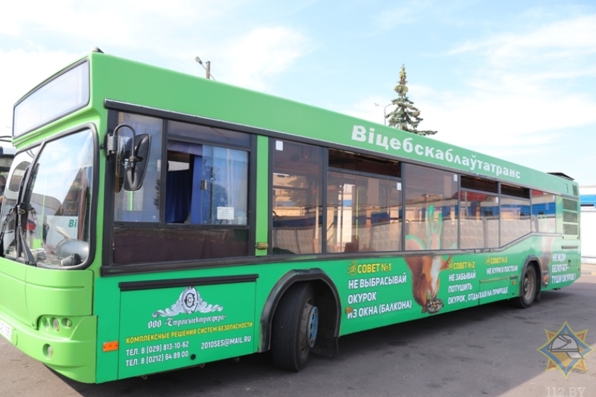 В Полоцке появился еще один автобус с социальной рекламой МЧС. В этот раз спасатели призывают курильщиков помнить о правилах безопасности.