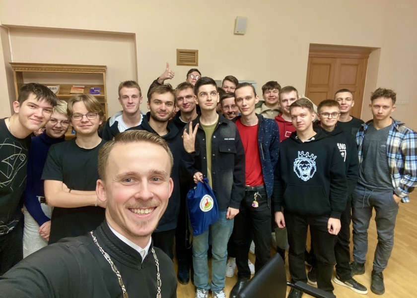 С юношами и девушками встретились клирики прихода храма Святого Архангела Михаила г.Новополоцка иерей Андрей Бабушкин и иерей Тихон Антух, клирики Богоявленского кафедрального собора диакон Владимир Джежора и диакон Иоанн Каменков, а также настоятель прихода храма великомученика и целителя Пантелеимона иерей Александр Козел.