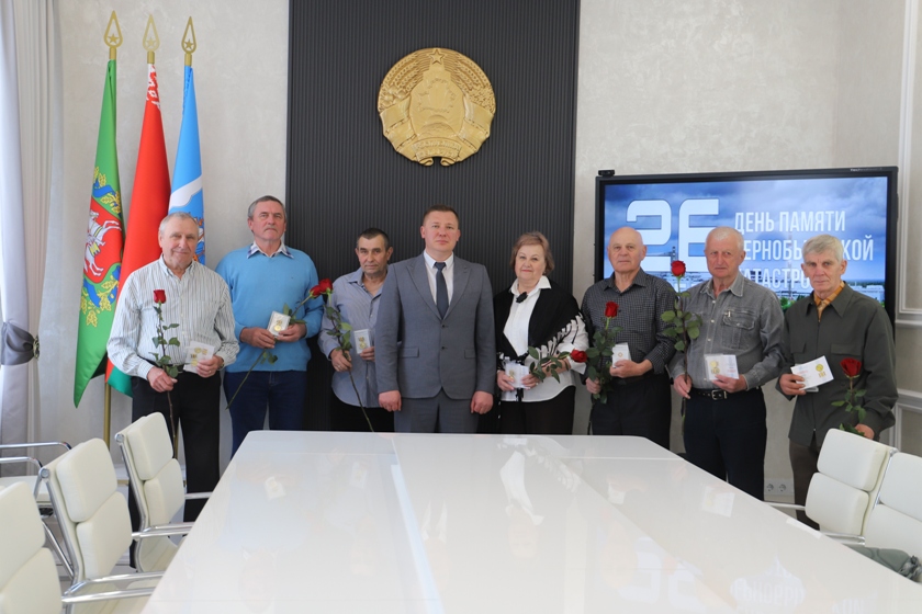 Нагрудные знаки Департамента по ядерной и радиационной безопасности МЧС Республики Беларуси «За заслуги в преодолении последствий катастрофы на Чернобыльской АЭС» приглашенным вручил Василий Шилов, председатель Полоцкого райисполкома. Глава района высказал им благодарность за проделанную работу по ликвидации последствий аварии, пожелал здоровья и благополучия, поинтересовался имеющимися проблемами.