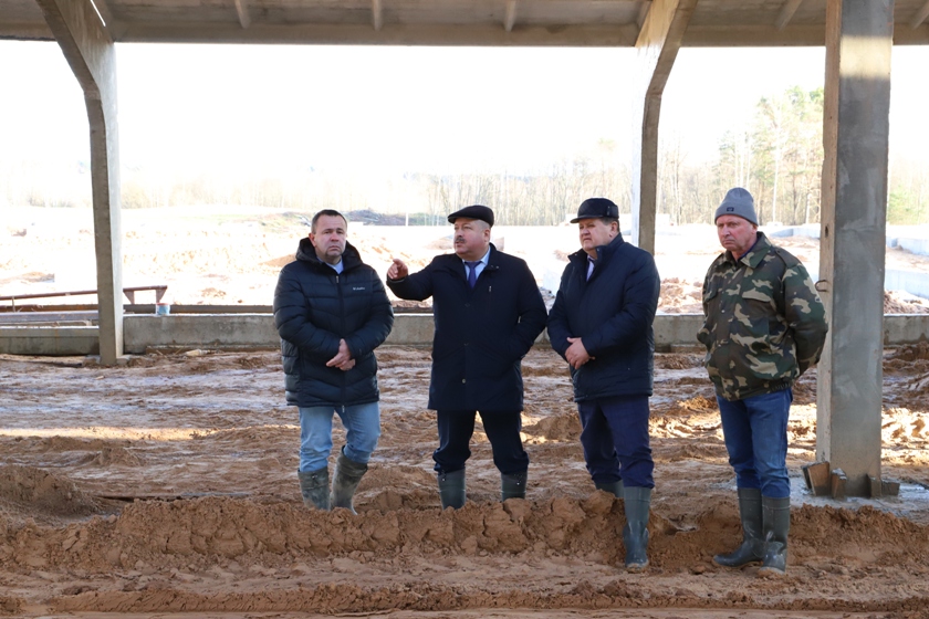 ОАО «СРСУ-3 г.Новополоцк». На объекте работает 50 человек и 23 единицы техники, в том числе и субподрядных организаций: ООО «Алекс монтаж», «НПФ-строитель». Ведется устройство свай под помещения коровников, закладка фундаментов, устройство ростверков, прокладка инженерных сетей, проводится конкурс на закупку оборудования. Анатолий Линевич обозначил замечания по темпу работ — погодные условия не позволяют оперативно выполнять запланированные графиком мероприятия.