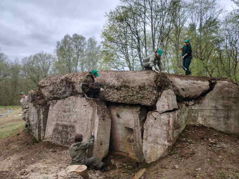 Поисковики отряда «РВС» и гости из России занимались благоустройством и уборкой территории дота №48 (д.Бело-Матейково) и №43 (д.Матейково). Они вычищали поверхность дотов от травы и лесного мусора, вырубали лишний кустарник, ветви деревьев, убирали сухую траву, занимались ремонтными работами. Председатель Азинского сельисполкома Сергей Бирюков подчеркнул: «Мы рады, что у нас появляется все больше помощников. Особенно дорого то, что люди приезжают издалека, чтобы отдать дань памяти и уважения погибшим, помочь в благоустройстве значимых для нашей истории мест».