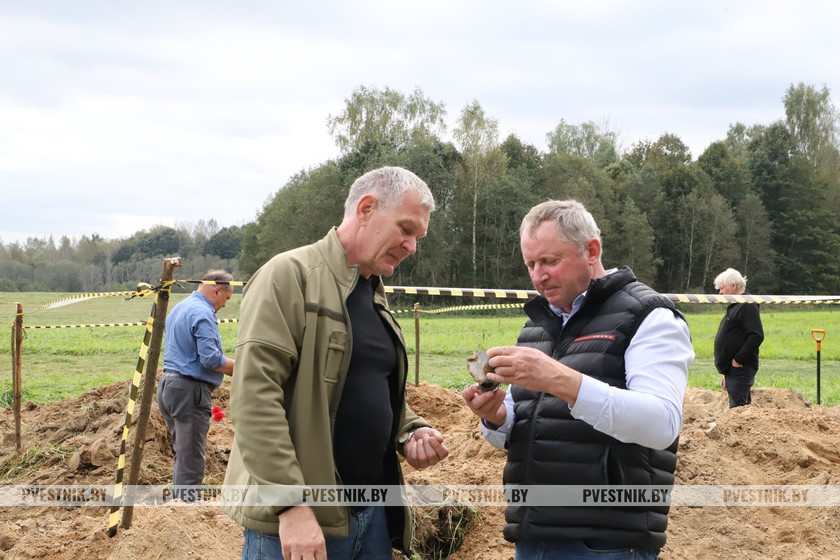 Раскопки проводились на окраине поля ОАО «Кушлики». Директор сельхозпредприятия Фёдор Завадский заехал к поисковикам и поинтересовался, как идут работы. Заместитель руководителя ВПК «Поиск» из Шклова Игорь Девятников показал фрагменты деталей, которые подняты из земли, рассказал о ходе работ. А Светлана Комогорцева поделилась планами установки памятника летчикам, погибшим на территории Полотчины. Фёдор Завадский поддержал поисковиков и высказал желание оказать помощь в увековечении имен погибших.