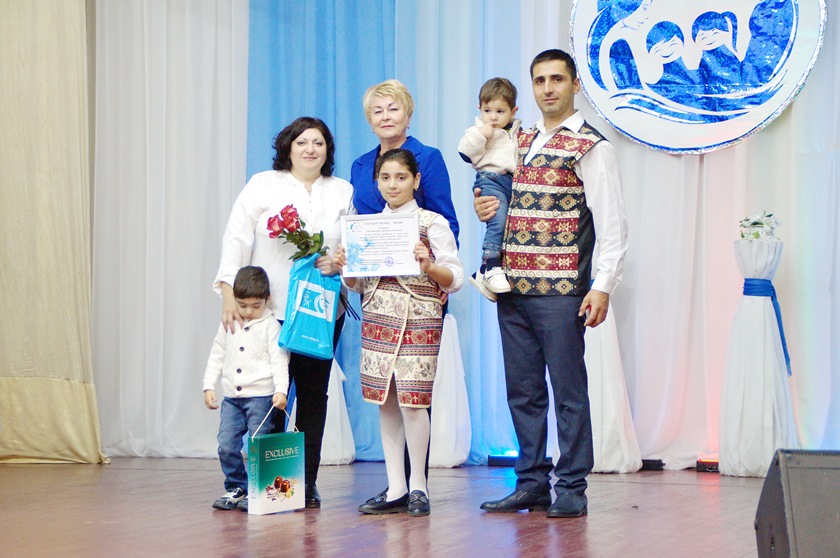 За активную жизненную и гражданскую позицию председатель Полоцкой районной организации ОО «Белорусский союз женщин» А.П.Щукина отметила благодарностью многодетную семью Григорян (на фото). Председатель Гомельского сельисполкома Д.Л.Цыро передал благодарность главе семьи Козловых за активное участие в культурной жизни сельсовета. Директор Полоцкого РЦК С.И.Лазаренко поблагодарила Елену Мороз за то, что результат семейного хобби можно увидеть в качестве украшения многих мероприятий филиала «Руднянский СДК». Чета Дёминых, которая именно в этот день 19 лет назад связала себя узами брака, получила от организаторов символический подарок в честь гранатовой свадьбы.