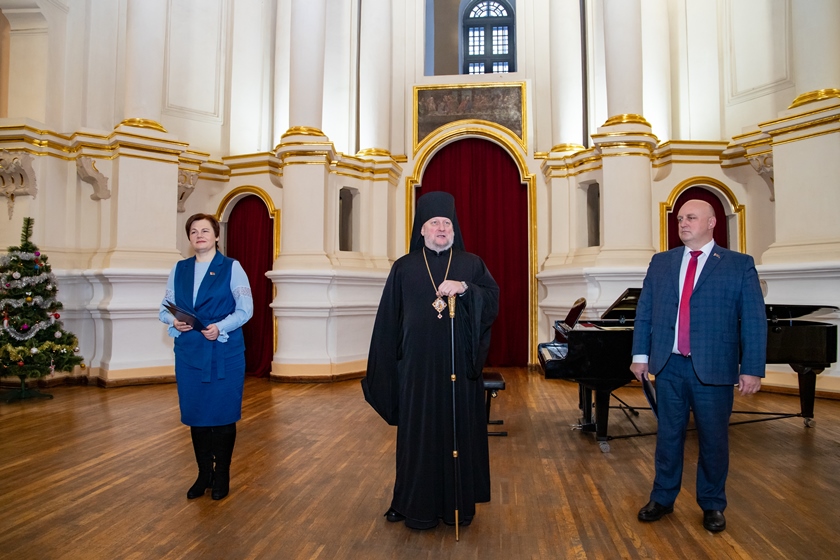 Обращаясь к присутствующим, епископ Полоцкий и Глубокский Игнатий поздравил всех с праздником Рождества Христова. «Сегодня мы вспоминаем рождение Богомладенца Христа. Для нас важно найти свое место и построить свою жизнь так, чтобы она с каждым днем приближалась к нему. Мы сегодня поздравляем друг друга и молимся, чтобы Господь принял нас в число своих учеников, стараемся жить по христианским постулатам, потому что так поступали деды. Здравия, крепости сил, помощи Божией в трудах и жизни, чтобы всегда Богомладенец Христос был у нас на первом месте. Если Бог будет на первом, то все остальное будет на своем. С Праздником Рождества Христова», — обратился к залу владыка