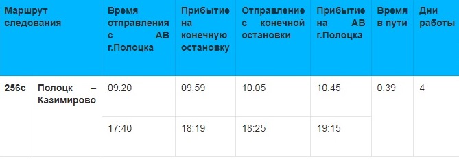 Внеслись изменения в раписание пригородного сезонного маршрута Полоцк-Казимирово