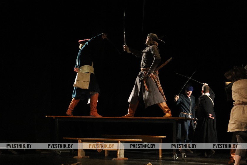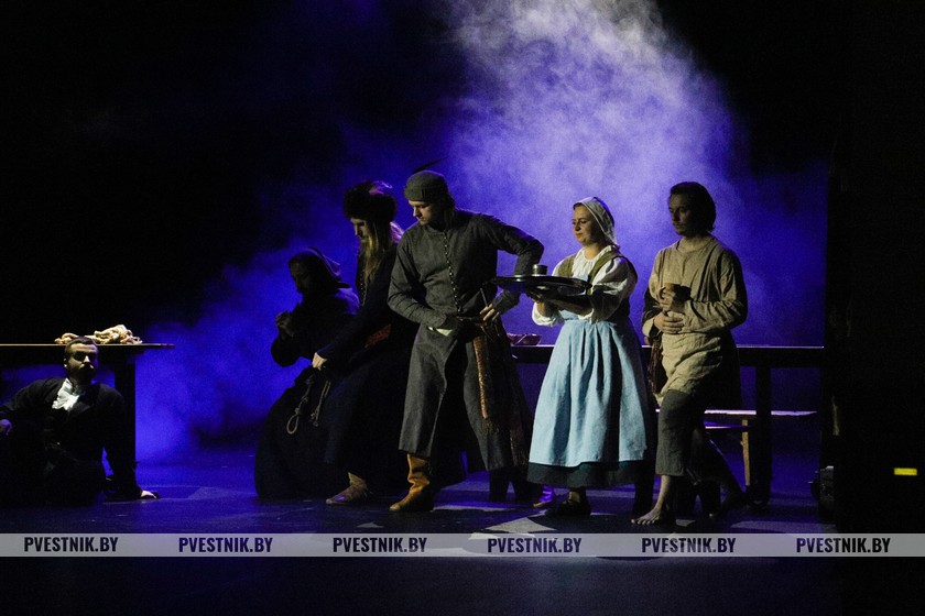 Второй день V театрального фестиваля «УМОЎNО» начался с премьерного показа. Народный театр исторического костюма «Полацкі зьвяз» продемонстрировал полоцкому зрителю и участникам масштабного мероприятия пластический спектакль «Стол».