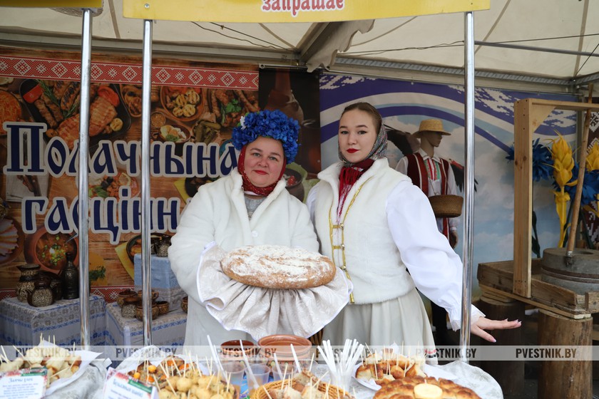 Полоцкий районный центр культуры приглашал продегустировать «Полацкія прысмакі», белорусский квас «Сула», пряники «Дожинки-2024», домашний хлеб на кленовых листьях. Мастер Татьяна Захаренкова увлекала всех желающих изготовлением куколок «Зерновушечка», которые делаются без иглы – только из ткани, зернышек и узелков из ниток.
