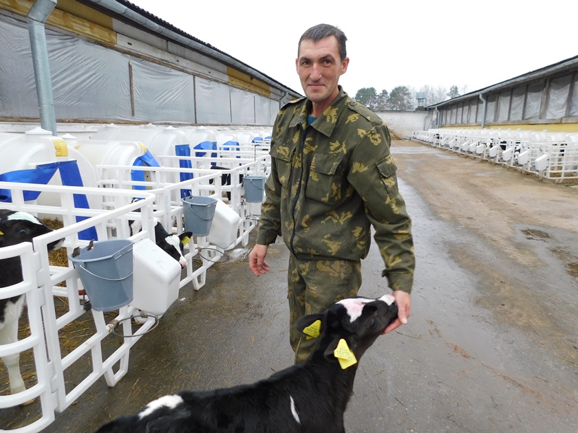 З вялікай любоўю і цеплынёй, быццам да дзяцей, ставіцца да цялят Дзмітрый Бакурын, жывёлавод (цялятнік) сельскагаспадарчага ўнітарнага прадпрыемства «Палімір — агра».
