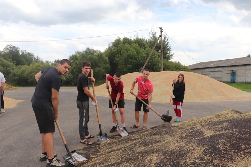 Свой вклад в общий результат вносит и молодежь. В эти дни для них на зернотоке УП «Горяны-Агро» также горячая пора. Трудятся 12 человек — учащиеся старших классов местной школы и ребята, уже обучающиеся в учебных заведениях. Работа организована в две смены. На первый взгляд она простая, но кто знаком с зернотоком, знает, что нужная.